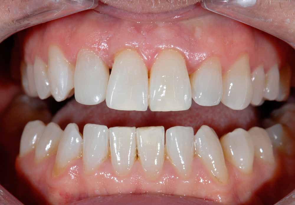 This patient was missing his lateral incisor teeth and didn’t like the pointy canine teeth in their position. We did some teeth whitening and composite bonding to improve his smile.