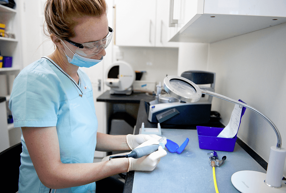 We use Trios Intraoral scanners which allows us to capture a digital 3D model of your teeth and gums. No goop or gag to worry about. Faster and offers superior results than traditional impressions.